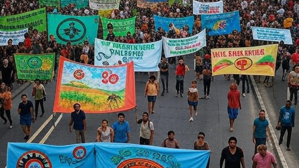 A ativista indígena Txai Suruí, liderança do povo Paiter Suruí, defendeu uma maior participação e poder de decisão para os povos originários nos espaços oficiais da 30ª Conferência das Nações Unidas sobre Mudanças Climáticas (COP30), realizada em Belém. Durante a Marcha Mundial pelo Clima, que ocorreu no sábado (15) e mobilizou manifestantes pelas ruas da cidade, Txai destacou que as recentes manifestações indígenas na Zona Azul da conferência, como os protestos de terça e sexta-feira, representam um recado claro de insatisfação. Ela criticou a exclusão dos povos tradicionais das discussões que afetam diretamente seus territórios e vidas, comparando a situação a um evento realizado na casa de alguém sem que o dono possa entrar. “Imagina ter um evento na sua casa e você não poder entrar lá, enquanto eles decidem sobre a sua vida, enquanto o seu território segue ameaçado, segue sofrendo violações, as suas pessoas seguem morrendo”, afirmou a ativista, cujos territórios estão localizados nos estados de Rondônia e Mato Grosso.